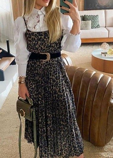 إذا كنتِ تحبين التجديد والتغيير، جربي تنسيق الفستان مع قطع أخرى مثل قميص بياقة عالية تحت الفستان، أو جاكيت خفيف فوقه، كما يمكنكِ ارتداء كارديجان طويل أو بلوزة مفتوحة لمظهر أكثر تنوعًا، هذه الطريقة لا تضيف فقط إلى المظهر لمسة عصرية، بل تساعد أيضًا على التكيف مع تغير درجات الحرارة.