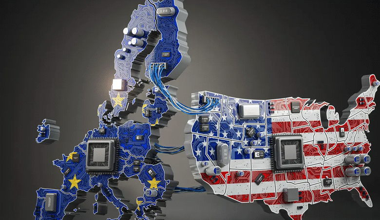 5– الصراع حول مستقبل الذكاء الاصطناعي وتنظيمه: يمثل الذكاء الاصطناعي واحداً من أبرز مجالات الصراع بين الشركات التكنولوجية الأمريكية والدول الأوروبية؛ حيث تسعى بروكسل إلى وضع إطار قانوني صارم يضمن استخداماً مسؤولاً لهذه التكنولوجيا، في حين تدعو الشركات الأمريكية إلى تقليل القيود التنظيمية لتجنب إبطاء الابتكار. وتبنى الاتحاد الأوروبي في عام 2024 قانون “الذكاء الاصطناعي AI Act الذي يفرض معايير دقيقة على الشركات التي تطور وتستخدم تقنيات الذكاء الاصطناعي، خاصةً في المجالات الحساسة مثل الرعاية الصحية والعدالة والأمن.