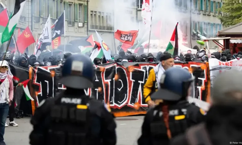دعماً لفلسطين.. تظاهرات تتسبب بإصابة العشرات وتدمير 57 مبنى في سويسرا