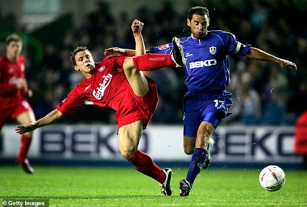 مسقط (يمين) في مباراة ضد لاعب ليفربول ستيفن وارنوك عندما لعب مع ميلوول