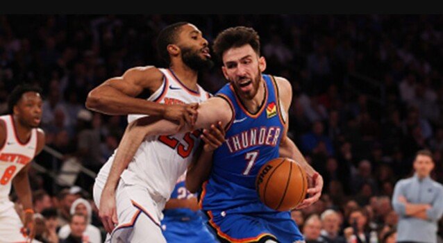 وشهدت المباراة إثارة كبيرة بعدما قلب نيكس تأخره بفضل ربع ثالث قوي سجل خلاله 40 نقطة، قبل أن يستعيد أوكلاهوما سيتي التقدم في بداية الربع الأخير ويحافظ عليه حتى النهاية. وأهدر جايلن برونسون وأو جي أنونوبي محاولتين ثلاثيتين لمعادلة النتيجة في الثواني الأخيرة.