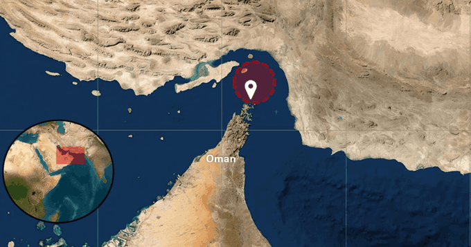 مقذوف مجهول يصيب سفينة شحن في مضيق هرمز