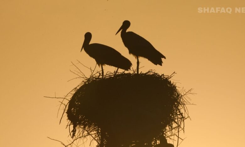 أبراج الطاقة العراقية محطة استراحة لطائر "اللقلق" قبل مواصلة هجرته إلى أفريقيا (صور)