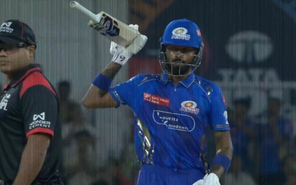هارديك بانديا يلقي مضربه في الإحباط بعد فشله في اصطحاب فريقه في مومباي الهنود للفوز ضد LSG.