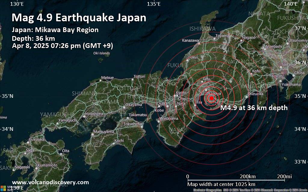تم الإبلاغ عن زلزال ضحل معتدلة 4.9 في وقت مبكر من المساء بالقرب من Anjo ، Anjō-shi ، Aichi-ken ، اليابان.
