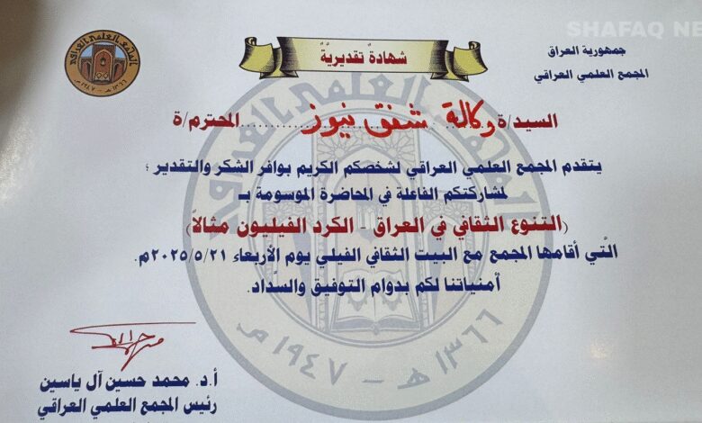 المجمع العلمي العراقي يحتفي بشفق نيوز: دور متميز ومهنية عالية