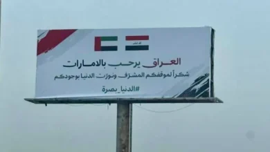 رفع يافطات ترحب بالمنتخب الإماراتي في البصرة (صور)